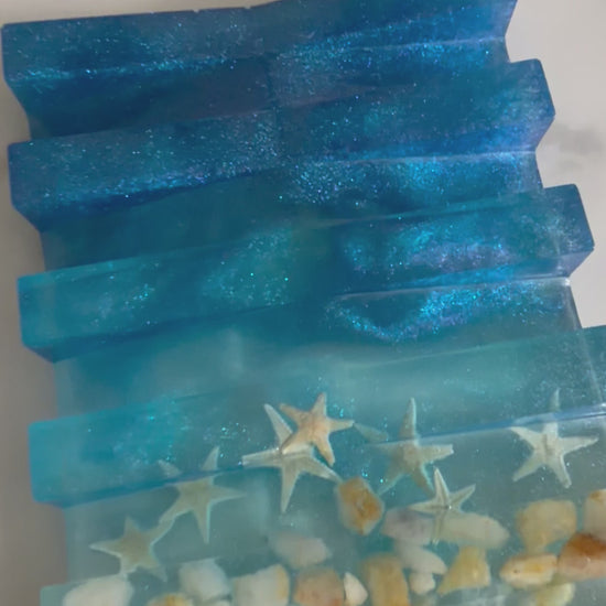 The soap dish is made from resin, real stones and real dried starfish to bring that fresh beach theme to your bathroom. It offers a self drain design to keep your soap dry. Resin material is durable and easy to clean.