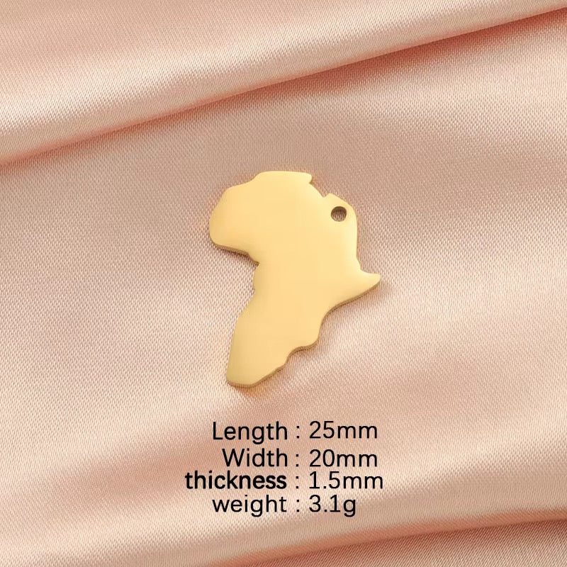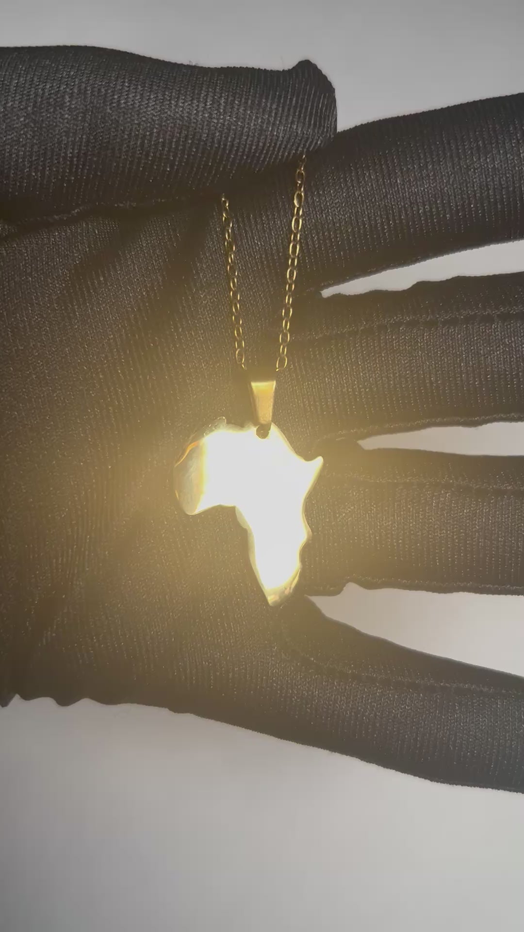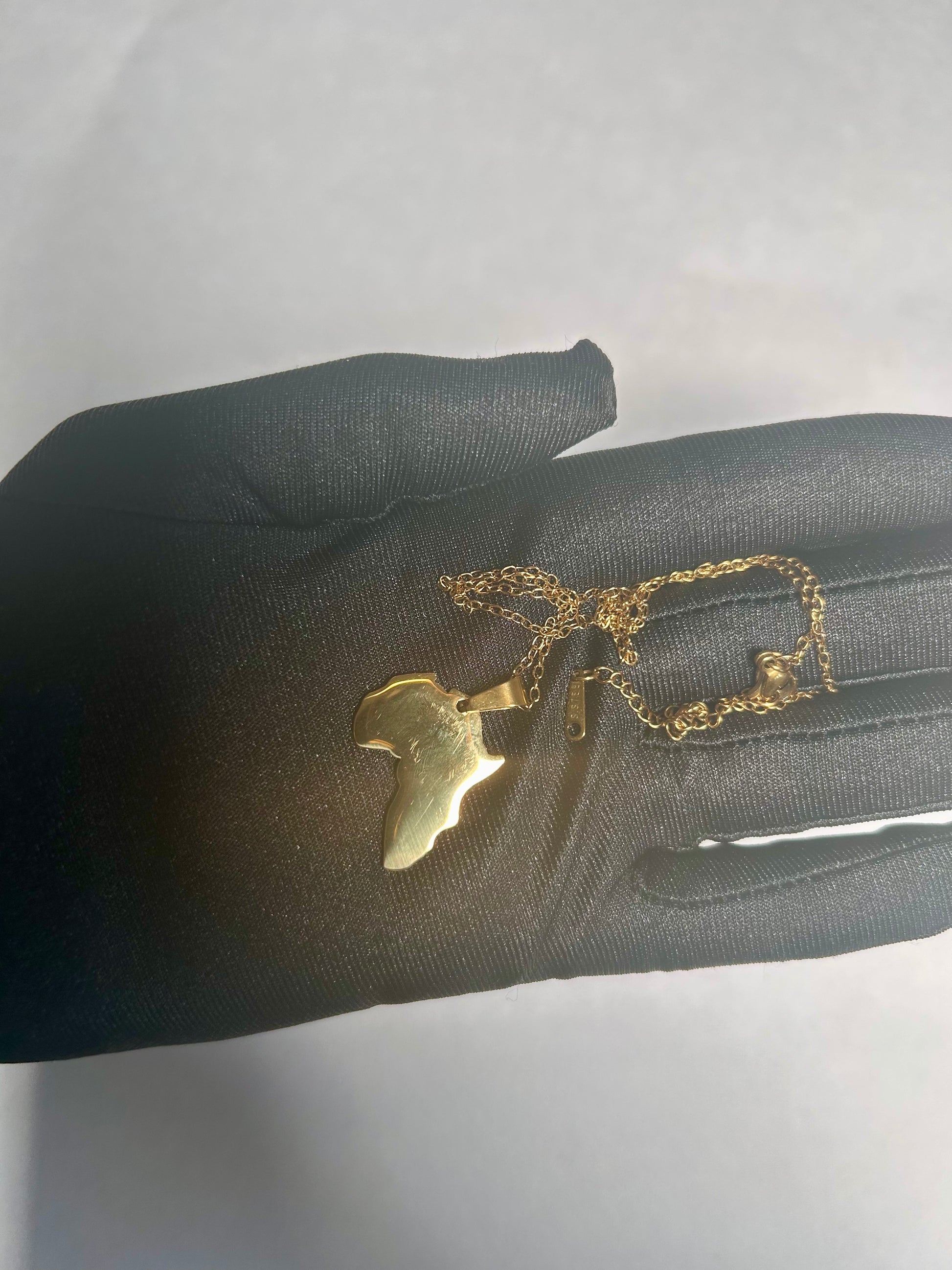Polished Africa map pendant with 45k gold plated Stainless Steel neckchain and an extension.